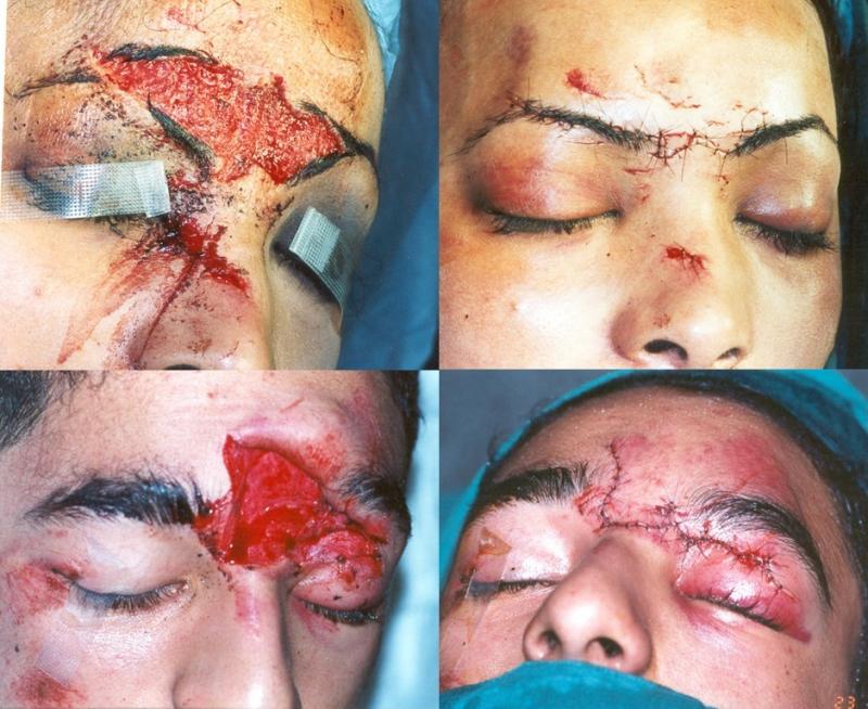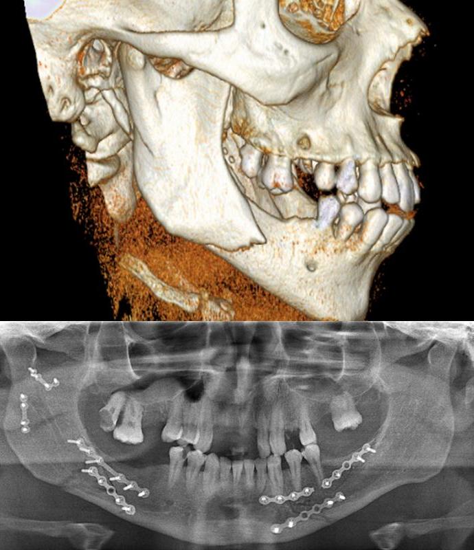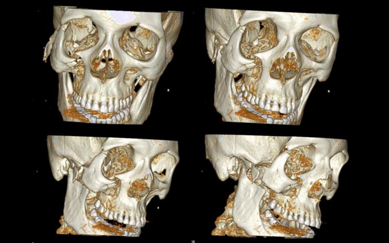 Diagnosis and treatment of soft (See Images Below) and hard tissue trauma of the oral and maxillofacial region (mandible fractures, zygoma/maxilla fractures, nasal/ethmoid fractures, mid-face (LeFort) fractures, skull fractures, frontal sinus fractures and orbital fractures)
